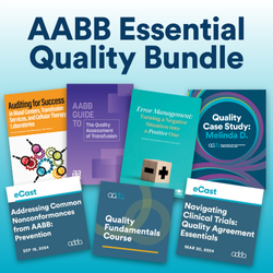 Introducing the AABB Essential Quality Bundle: a curated set of education resources and publications designed to support quality practices across the blood and biotherapies field at 50% off.